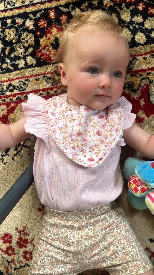Dribble Bib Cotton Bamboo | Pink Daisy