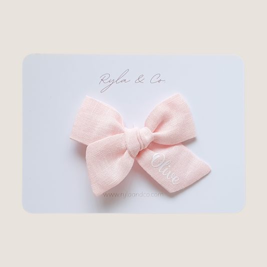 Personalised Classic Linen Bow | Soft Pink