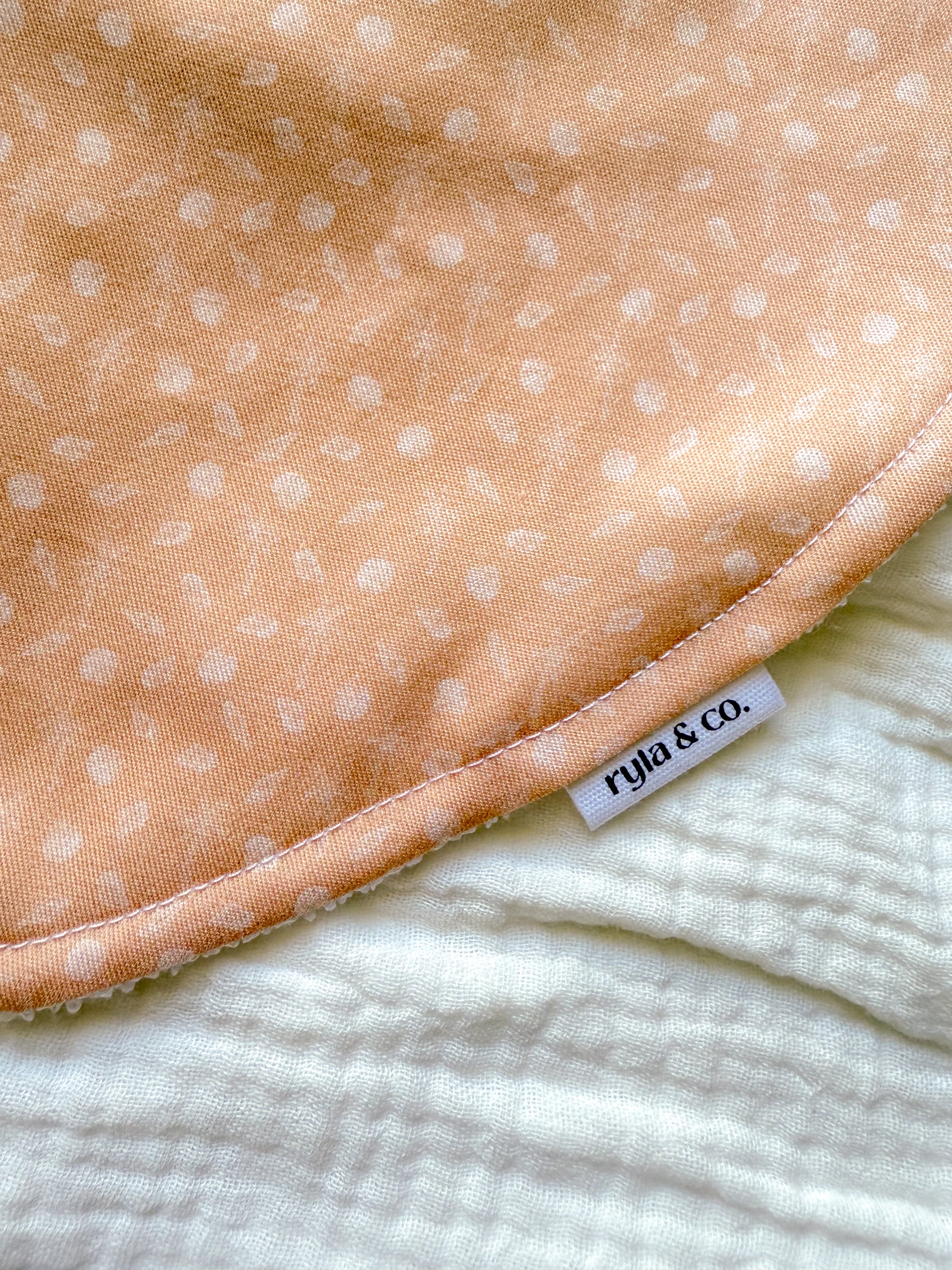 This luxuriously soft and stylish dribble bib is a must-have baby essential! Crafted with a cotton front and bamboo towelling backing, the practical design features two snap sizes to grow with your little one. Keep them dry and chic! Handmade in Sydney.